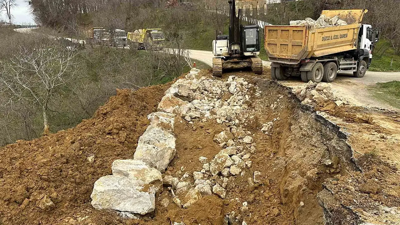 Düzce Yol ve Ulaşım Hizmetleri Müdürlüğü ile Akçakoca İlçe Özel İdare Müdürlüğü ekipleri, Akçakoca ilçesine bağlı Kirazlı Köyü’nde meydana gelen heyelan sonrası bölgede oluşan olumsuzlukların giderilmesi ve yol güvenliğinin sağlanması amacıyla çalışmalarını aralıksız sürdürüyor. Heyelan alanında zeminin yeniden stabil hale getirilmesi için taş tahkimatı ve dolgu çalışmaları titizlikle yürütülürken, yaşanabilecek risklerin önüne geçilmesi hedefleniyor. Gerçekleştirilen çalışmalarla birlikte hem can hem de mal güvenliğinin sağlanması, ulaşımda yaşanabilecek aksaklıkların önlenmesi amaçlanıyor. Yetkililer, bölgede yürütülen müdahale ve iyileştirme çalışmalarının planlanan program doğrultusunda devam edeceğini belirtirken, benzer durumlara karşı il genelinde gerekli tedbirlerin alınmaya devam edileceğini ifade etti.