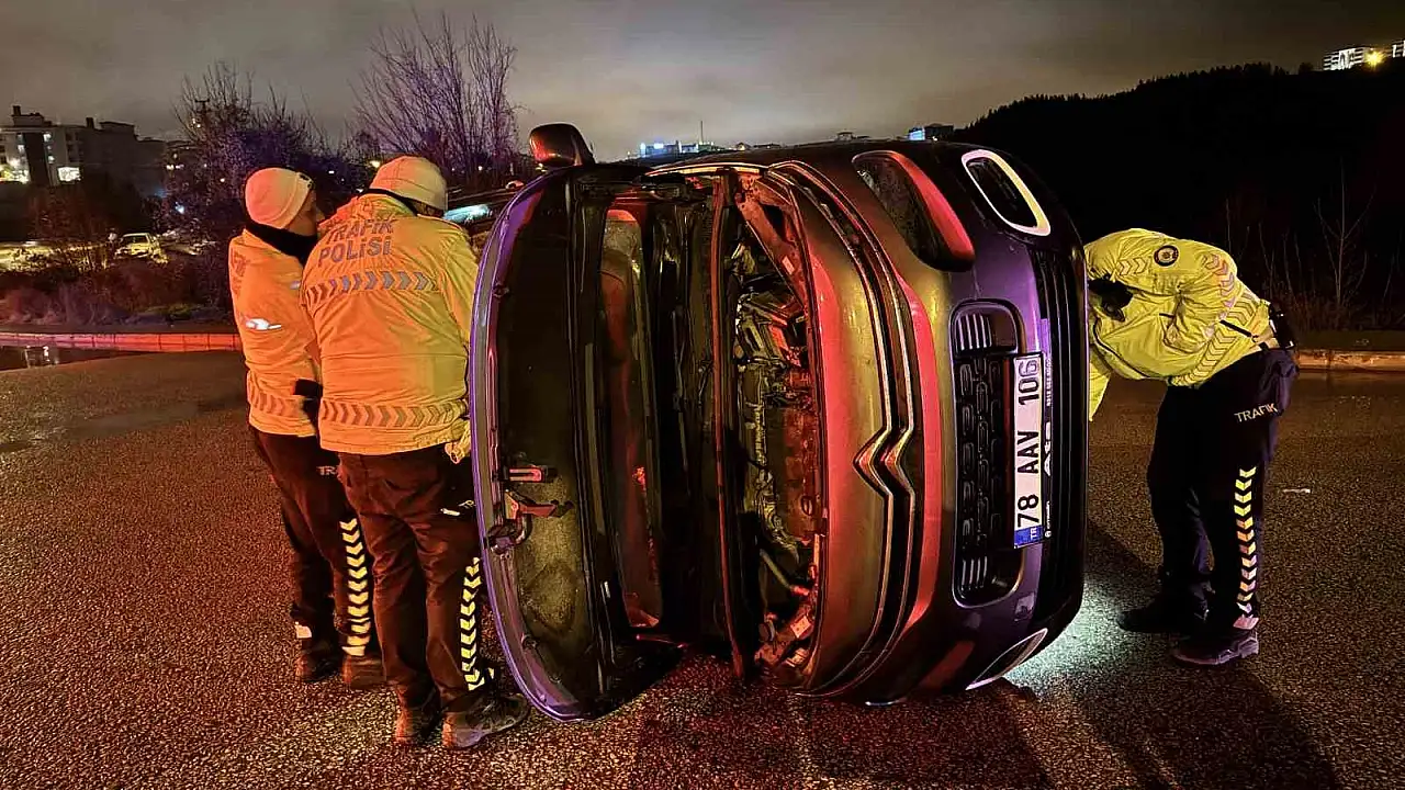 Kaza 100. Yıl Mahallesi 1010 Nolu Sokak’ta meydana geldi. Kimliği belirlenemeyen sürücü idaresindeki 78 AAV 106 plakalı hafif ticari araç Safranbolu istikametine seyir halindeyken kaldırıma çarpıp yaklaşık 50 metre ilerledikten sonra devrildi. Kazada araçta bulunan Ezgi Ç. yaralandı. İhbar üzerine olay yerine polis, itfaiye ve 112 Acil Servis ekipleri sevk edildi. Araçta sıkışan yaralı diğer sürücülerin yardımıyla çıkarılırken sağlık ekiplerinin ilk müdahalesinin ardından hastaneye kaldırıldı.