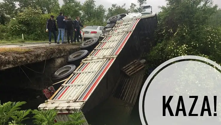 Bartın Arıt yolunda kontrolden çıkan kamyon dereye devrildi.