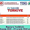 Başvuruların Emlak Katılım, Ziraat ve Halk Bankası üzerinden 5 bin TL karşılığında yapılacağı bildirildi.