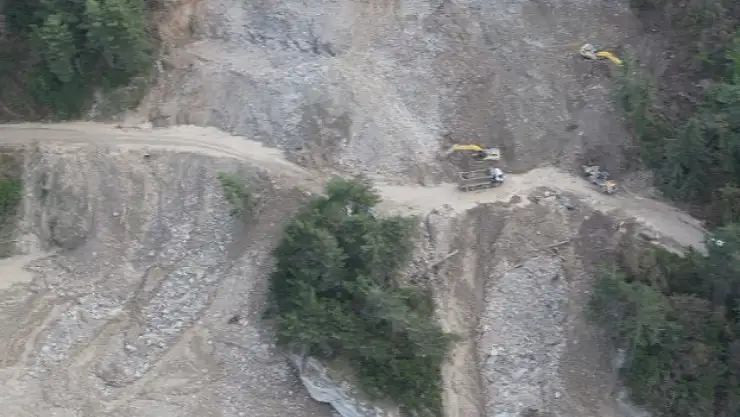 Karayolları 15. Bölge Müdürlüğü ekiplerince yolun tekrar ulaşıma açılabilmesi için başlatılan çalışmalar aralıksız sürüyor. Ekipler, kayan toprak kütlesini temizlerken, ayrıca zemin bölgesini sağlamlaştırarak yeni yol açıyor.