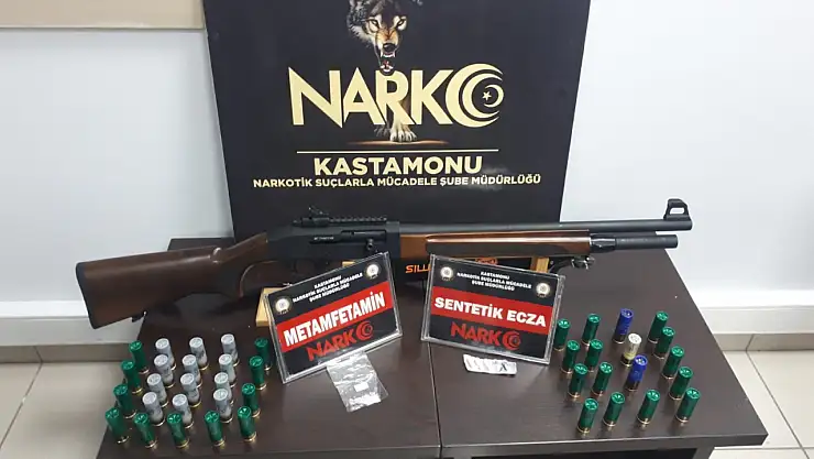 Edinilen bilgiye göre, uyuşturucu ticaretinin önlenmesine yönelik çalışmalarını sürdüren Kastamonu Emniyet Müdürlüğü Narkotik Suçlarla Mücadele Şube Müdürlüğü ekipleri tarafından yapılan çalışmalar çerçevesinde, 2 şahsın üst, araç ve ikametlerinde arama yapıldı. Aramada çeşitli miktarlarda metamfetamin ve reçeteye tabii hap ile uyuşturucu madde alımında kullanılan cam düzenek yakalandı. Aramada ayrıca 1 adet ruhsatsız av tüfeği ve 40 adet av tüfeği kartuşu ele geçirildi. Yakalanan 2 şahıs gözaltına alındı.
