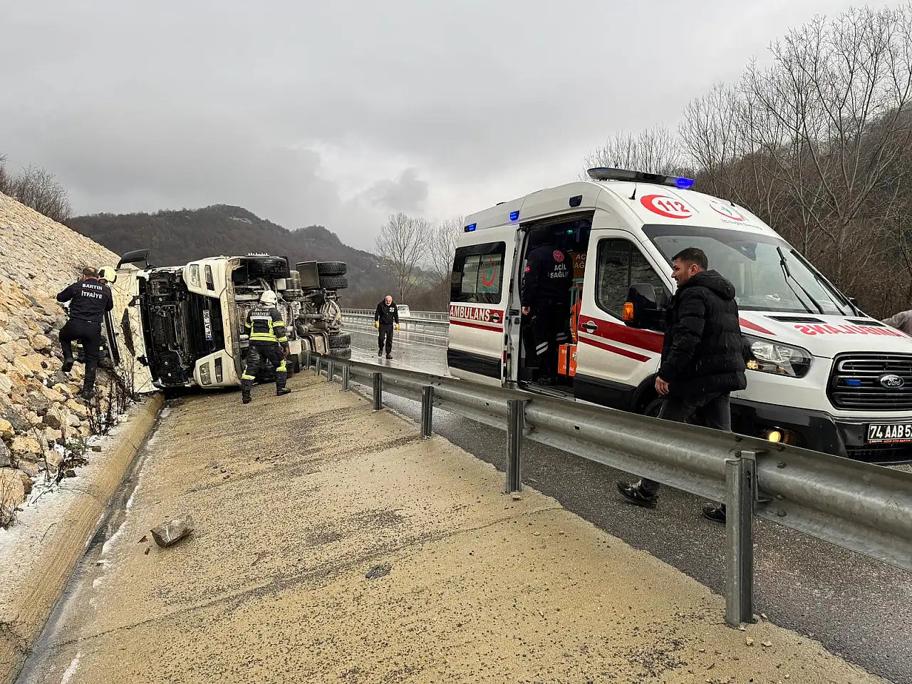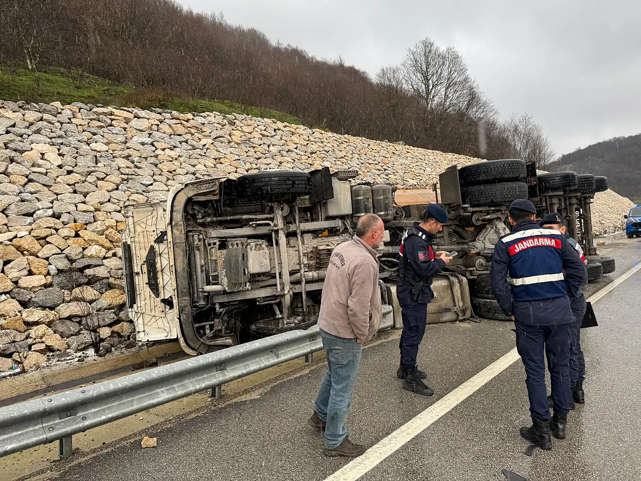 Bartın Amasra yolunda kömür yüklü tır devrildi, ekipler bölgeye sevk edildi