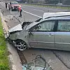 Lastiği patlayan otomobil bariyere çarpıp takla attı