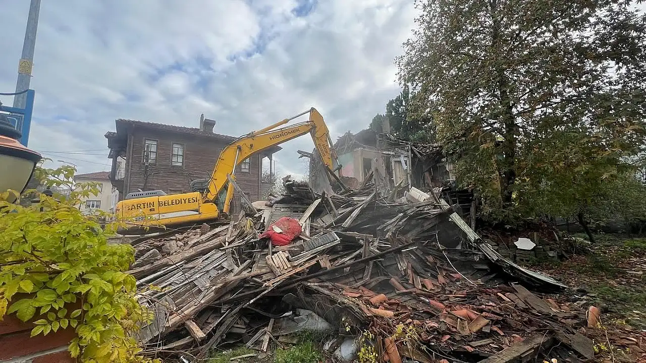 Bartın Belediyesi ekipleri, Kavaklı Caddesi’nde uzun süredir atıl durumda bulunan ve bir kısmı yıkık olan ahşap binayı yıktı.