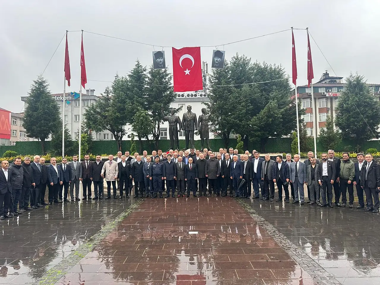 Muhtar Derneklerinin çelenk sunumunun ardından saygı duruşunda bulunuldu, İstiklal Marşı okundu.