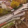 Karabük’te okul inşaatının yanındaki yolda meydana gelen çökme dronla görüntülendi.