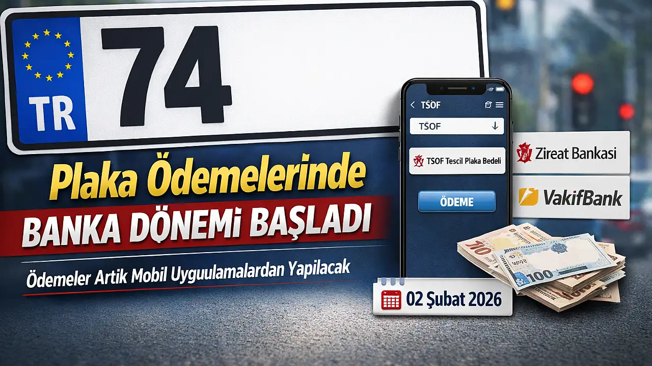 Bartın Şoförler ve Otomobilciler Odası, tescil plakası bedellerinin ödenmesine ilişkin yeni uygulamayı kamuoyuyla paylaştı. Yapılan açıklamaya göre, 02 Şubat 2026 tarihi itibarıyla tescil plakası bedelleri bankalar aracılığıyla ödenebilecek.