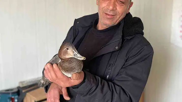 Şantiyede yaralı halde bulduğu ördeğe çocuğu gibi baktı