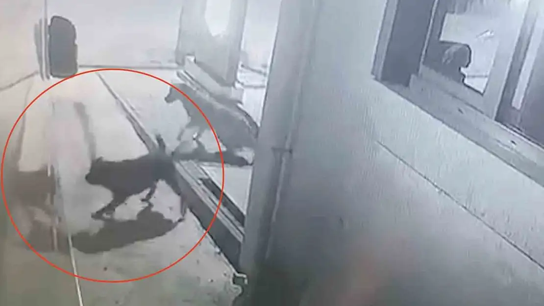 Güvenlik kamerasına yansıyan görüntülerde, köpeklerin aracın etrafında koştuğu ve daha sonra aracın tamponunu parçaladığını görülüyor. Köpekler bir süre sonra araçtan uzaklaşıyor.