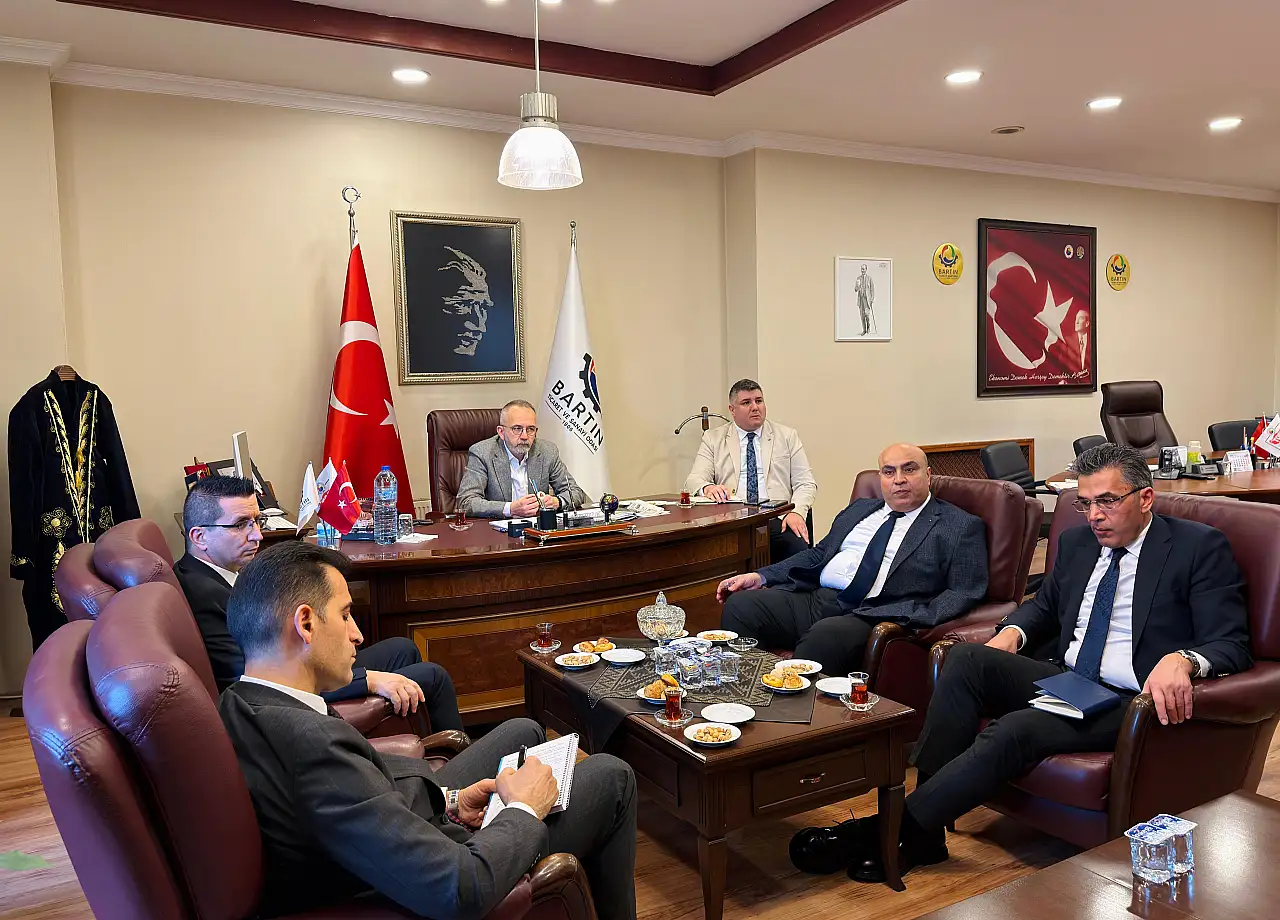 Gelir İdaresi Grup Başkanı Mehmet Fatih Özmen, Grup Başkanı Aytekin Şimşek, Bartın Defterdarı Ahmet Demirbağ ve Vergi Dairesi Müdürü Erhan Savaş, Bartın Ticaret ve Sanayi Odası Yönetimini ziyaret etti.