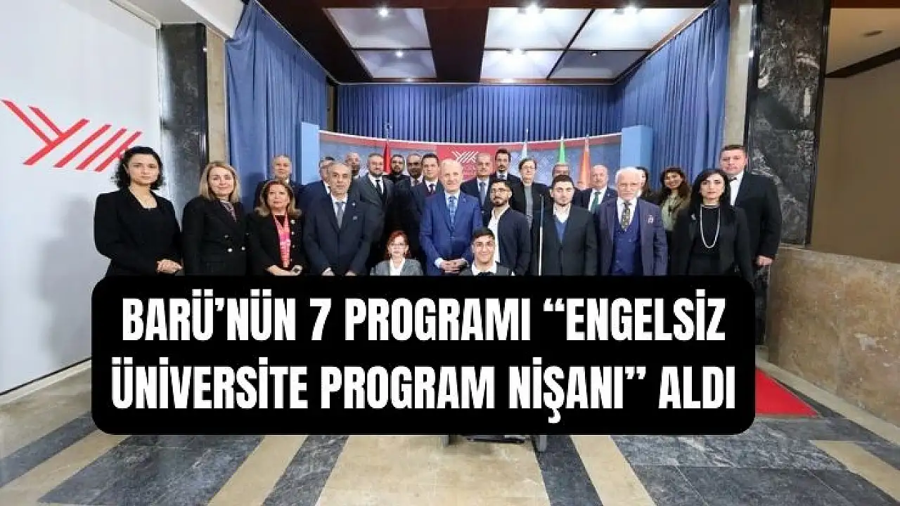 Yükseköğretim Kurulu (YÖK) tarafından üniversitelerde engelsiz bir ekosistemin oluşturulmasını teşvik etmek amacıyla “Engelsiz Üniversite Bayrakları ve Program Nişanı Ödül Töreni” düzenlendi. Törende, engelsiz üniversite ve erişilebilir kampüs anlayışıyla önemli çalışmaların yapıldığı Bartın Üniversitesinin (BARÜ) 7 programı “Engelsiz Üniversite Program Nişanı” aldı. Böylece BARÜ, en çok nişan alan ilk 7 yükseköğretim kurumu arasında yer alırken engelsiz ve erişilebilir üniversite vizyonunu bir kez daha tescilledi.