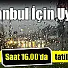 Valilikten yapılan açıklamada, yağışla birlikte oluşabilecek trafik yoğunluğu ve olası mağduriyetlerin önüne geçilmesi amacıyla, İl genelinde ikili eğitim yapan resmi ve özel anaokulu, ilkokul, ortaokul ve liselerde eğitimin saat 16.00’dan itibaren tatil edildiği belirtildi.