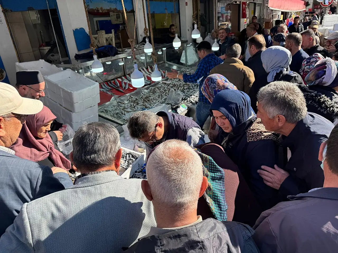 Bartın'da vatandaşlar hamsi alabilmek için kuyruk oluşturdu