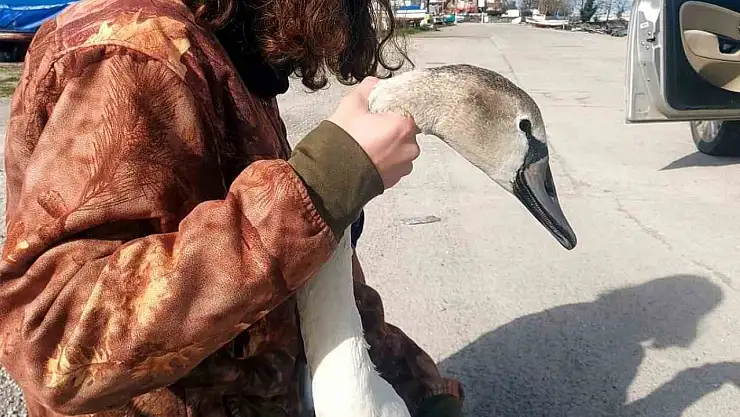 Vatandaşların bulduğu yaralı kuğu tedavi altına alındı