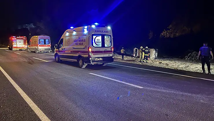 Yoldan çıkan hafif ticari araç takla attı