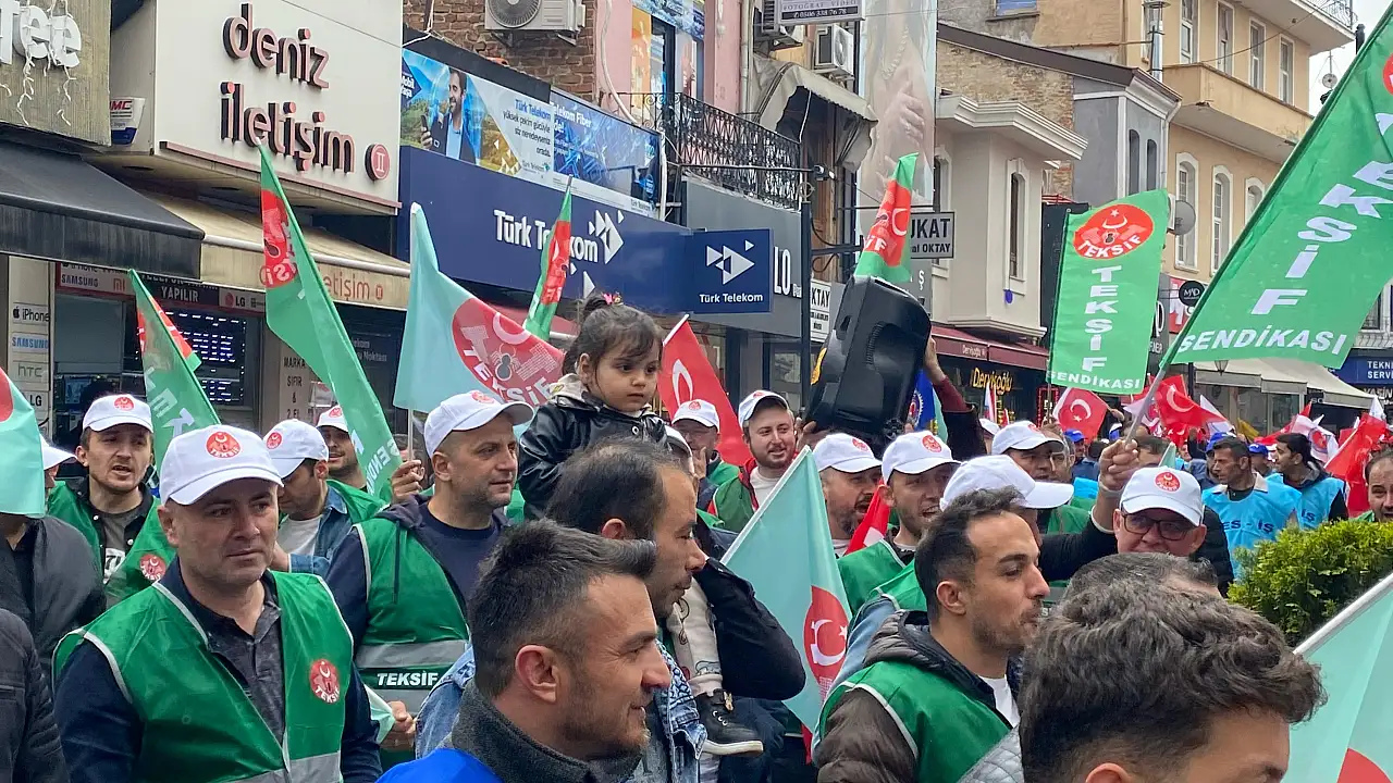Yüzlerce işçinin katıldığı yürüyüşten renkli görüntüler