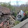 Zonguldak'ta kontrolden çıkan otomobil evin çatısına uçtu